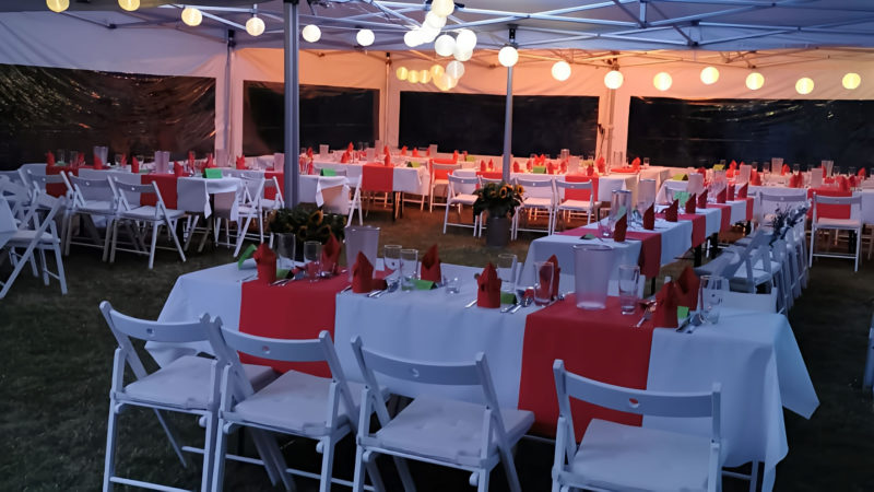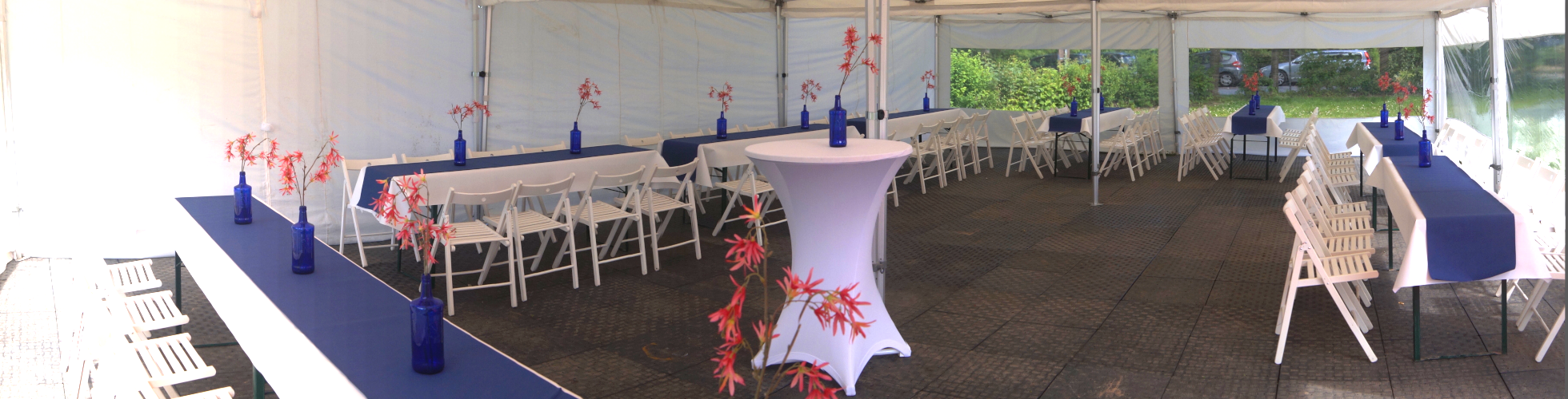 Beispiel für eine Gartenfeier mit einem 4 x 8 Meter Zelt:
